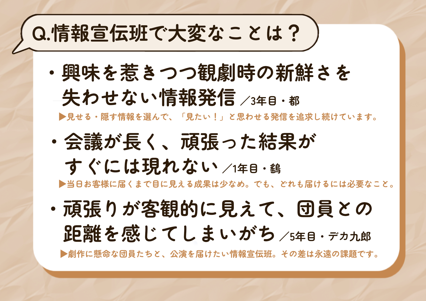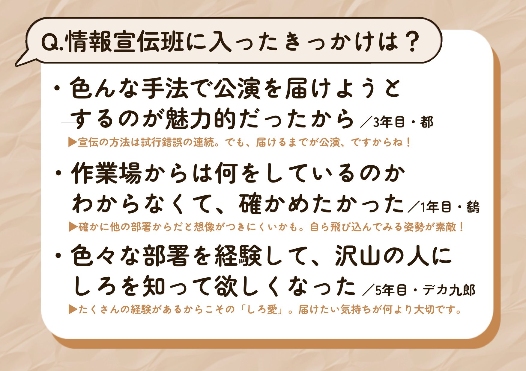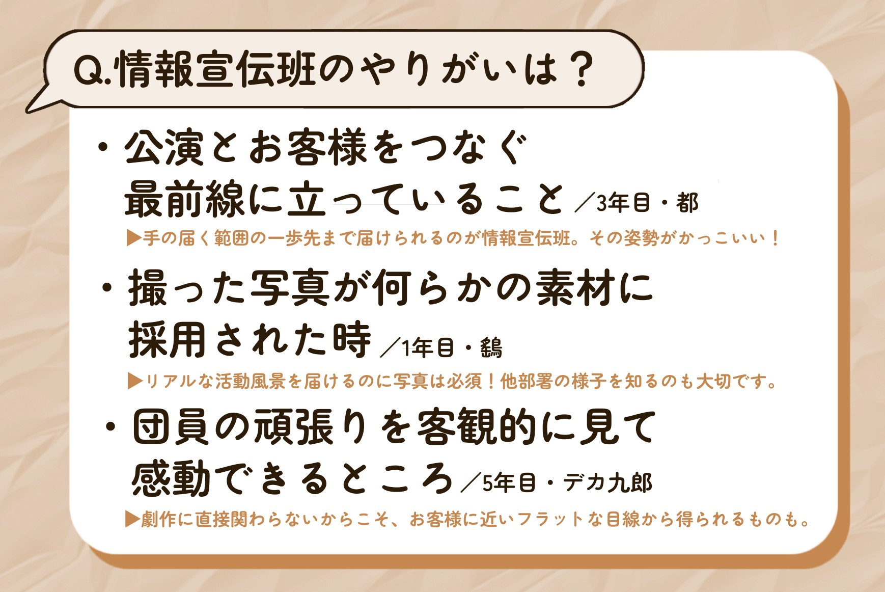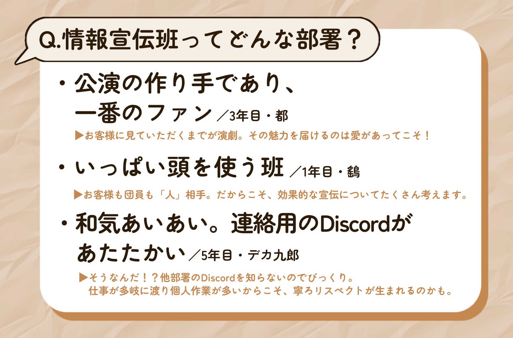 実際に情報宣伝班に所属する団員に、情報宣伝班について伺ってきました!(画像タップで拡大できます)