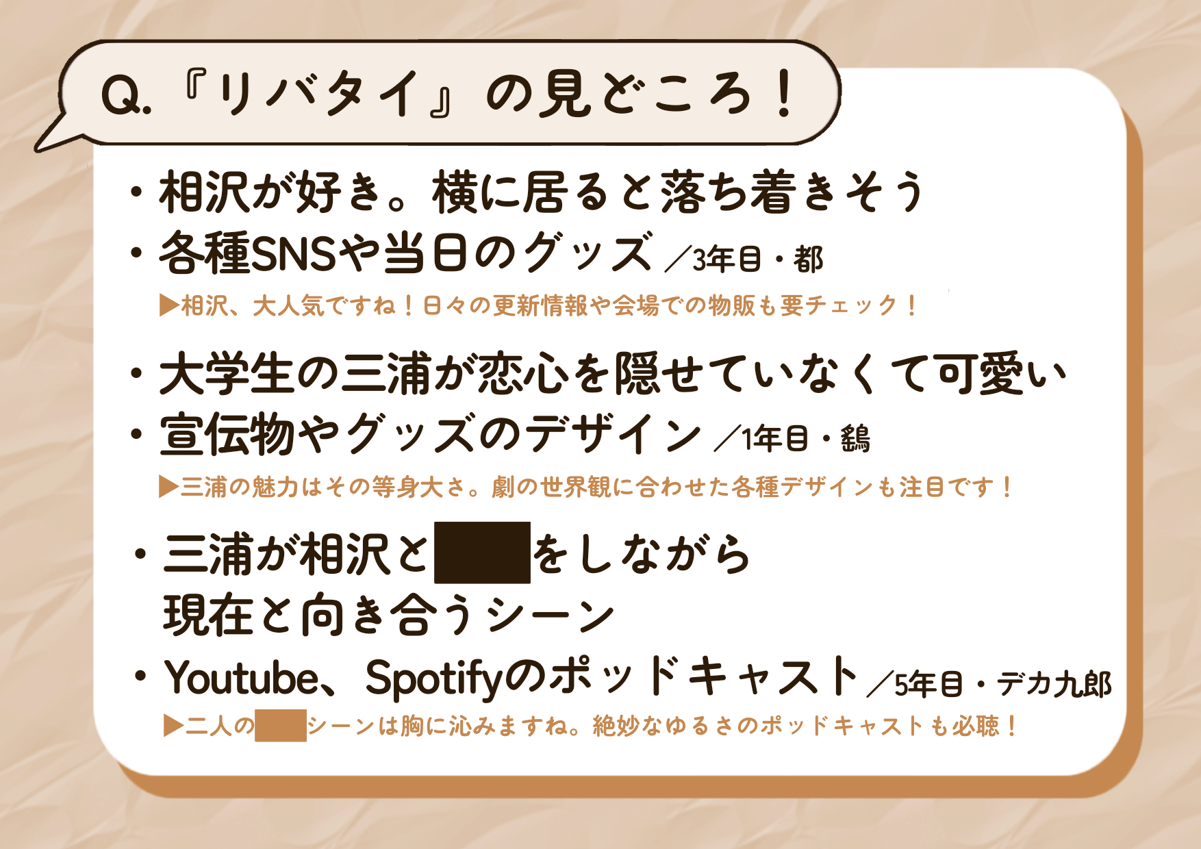情報宣伝班がお届けする各種SNSやグッズ、ポッドキャスト、そして何より『リバースタイムカプセル』公演本編を、皆さんぜひチェックしてくださいね!