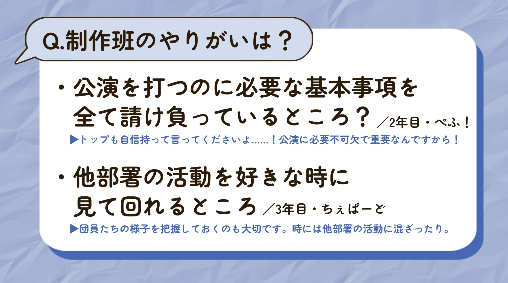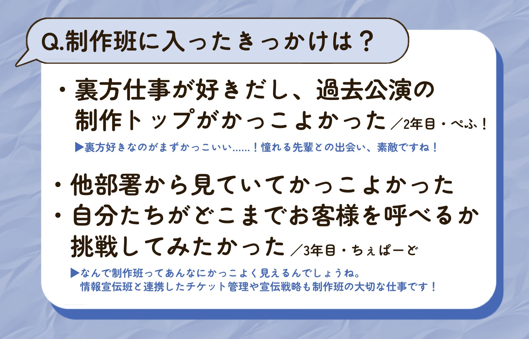 実際に制作班に所属する団員に、制作班について伺ってきました!