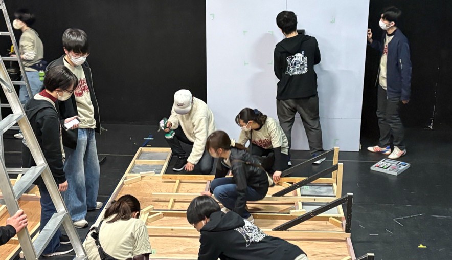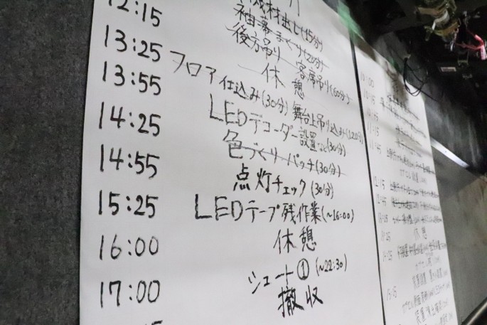 劇場に着くと、舞台装置の設置や照明の吊り込みへ。